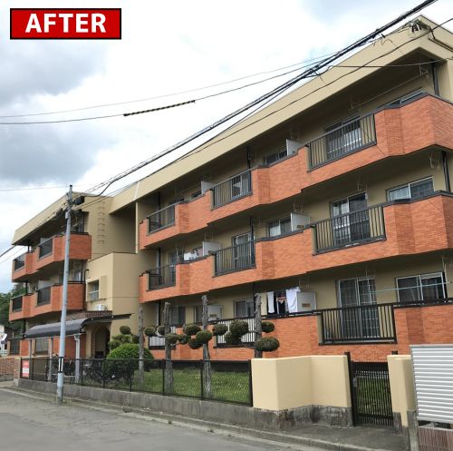 名取市もだんだんと暖かくなってきました! 作業にも塗料にもちょうどいい気温で、さて、施工開始です!こちらが足場解体後の写真です!