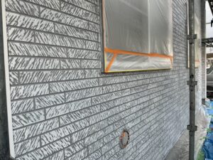 外壁は無機質系シリコンを使用し3回塗りを行っていきます。