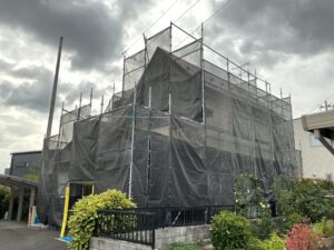足場の設置、メッシュシートの取付と洗浄が完了しました。