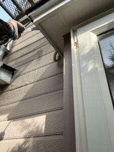 本日は屋根の中塗り、破風、雨樋、窓枠の塗装作業を行いました。