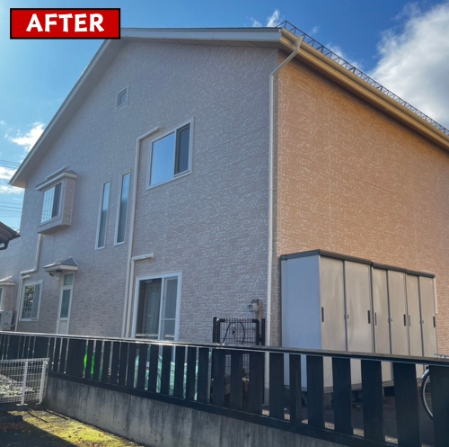 【施工内容】 足場仮設、メッシュ、高圧洗浄、ケレン、屋根3回塗り 外壁3回塗り、唐草塗装、破風塗装、鼻隠し塗装 水切り塗装、雨樋塗装、養生紙、軒天井塗装
