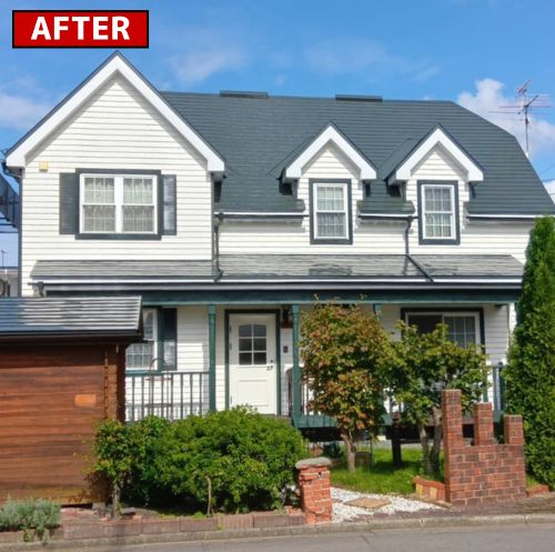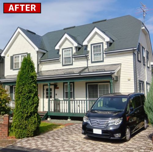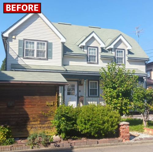 【施工内容】 足場仮設無料、高圧洗浄、ケレン、屋根・外壁塗装、付帯部塗装 軒天井塗装、木部塗装、スノーキング脱着、廃材処分