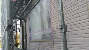 足場の設置、メッシュシートの取り付け、